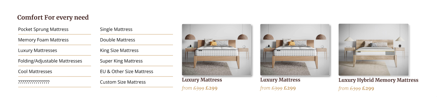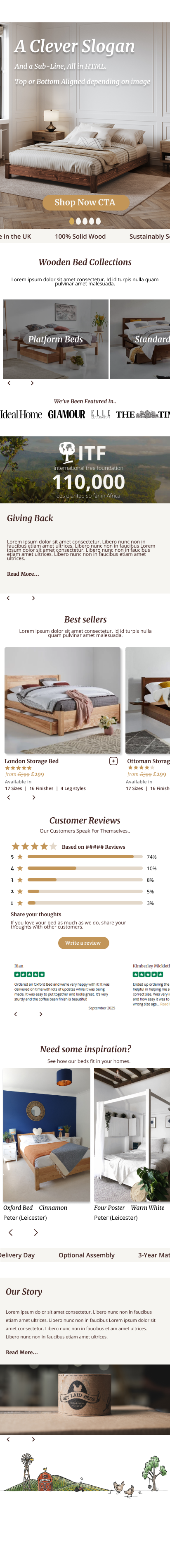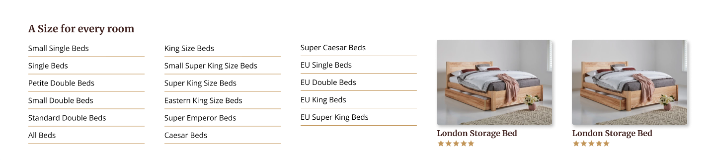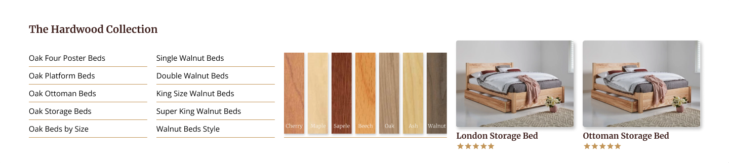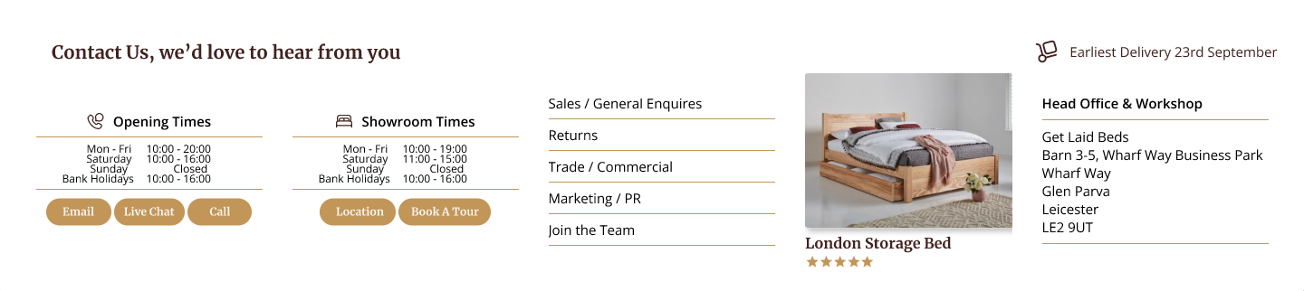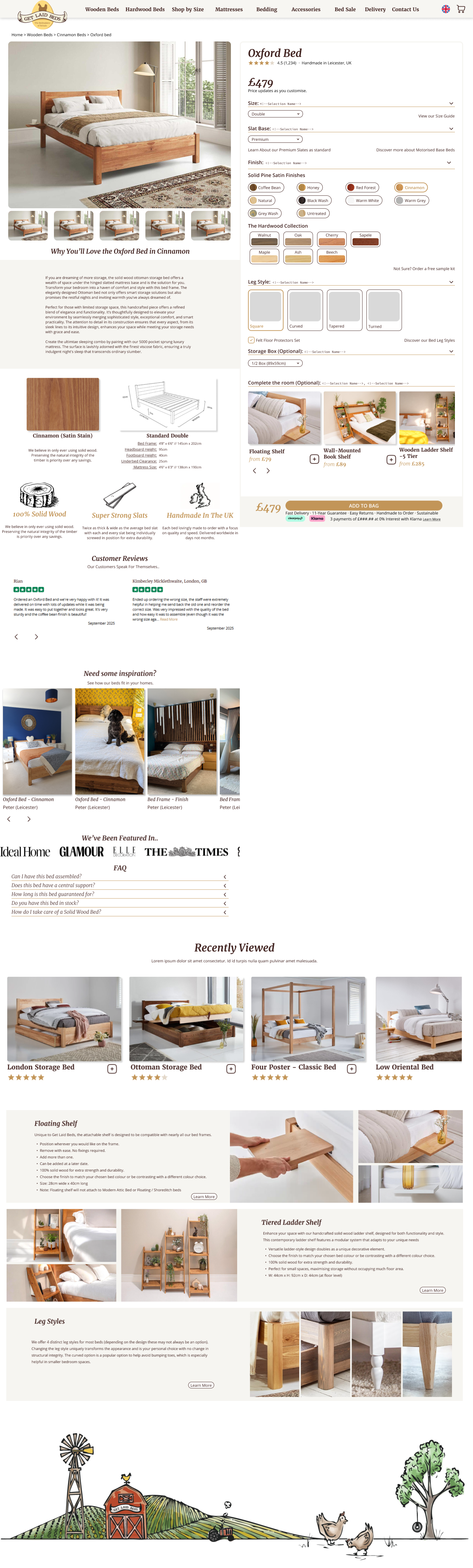 Get Laid Beds has a strong product story. Every bed is handmade. Every finish is real wood. Every size and style can be customised. What the brand didn’t have was a website that made any of that feel simple or inspiring. The original experience was very dated, almost early 2000s in style, with long stacked menus, inconsistent pages, and no clear user flow. It struggled to compete with modern furniture brands who were presenting themselves in a clean, editorial, interior design style.