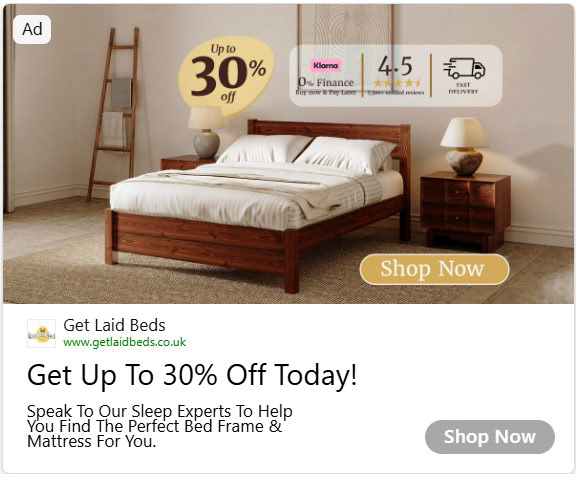 For Get Laid Beds I designed a vast range of PPC assets that were guided entirely by real user behaviour. Every layout, headline and visual choice came from data, not guesswork. What worked stayed. What didn’t was replaced, tested again and improved.